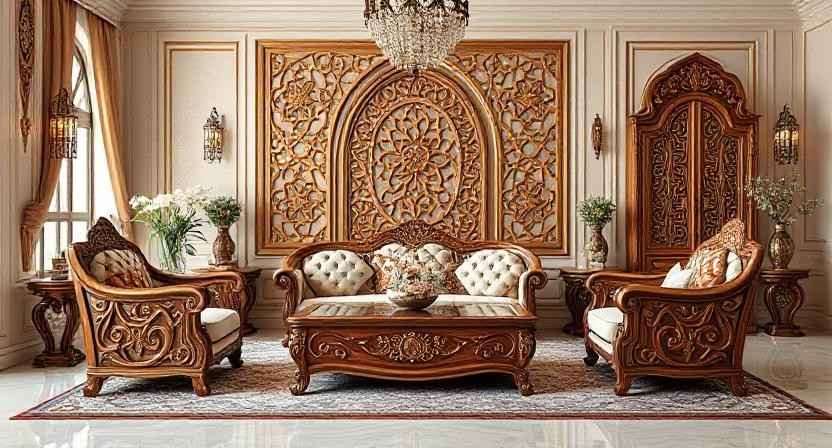 Why it works: These details add instant grandeur while keeping your majlis or lounge sophisticated, not flashy.